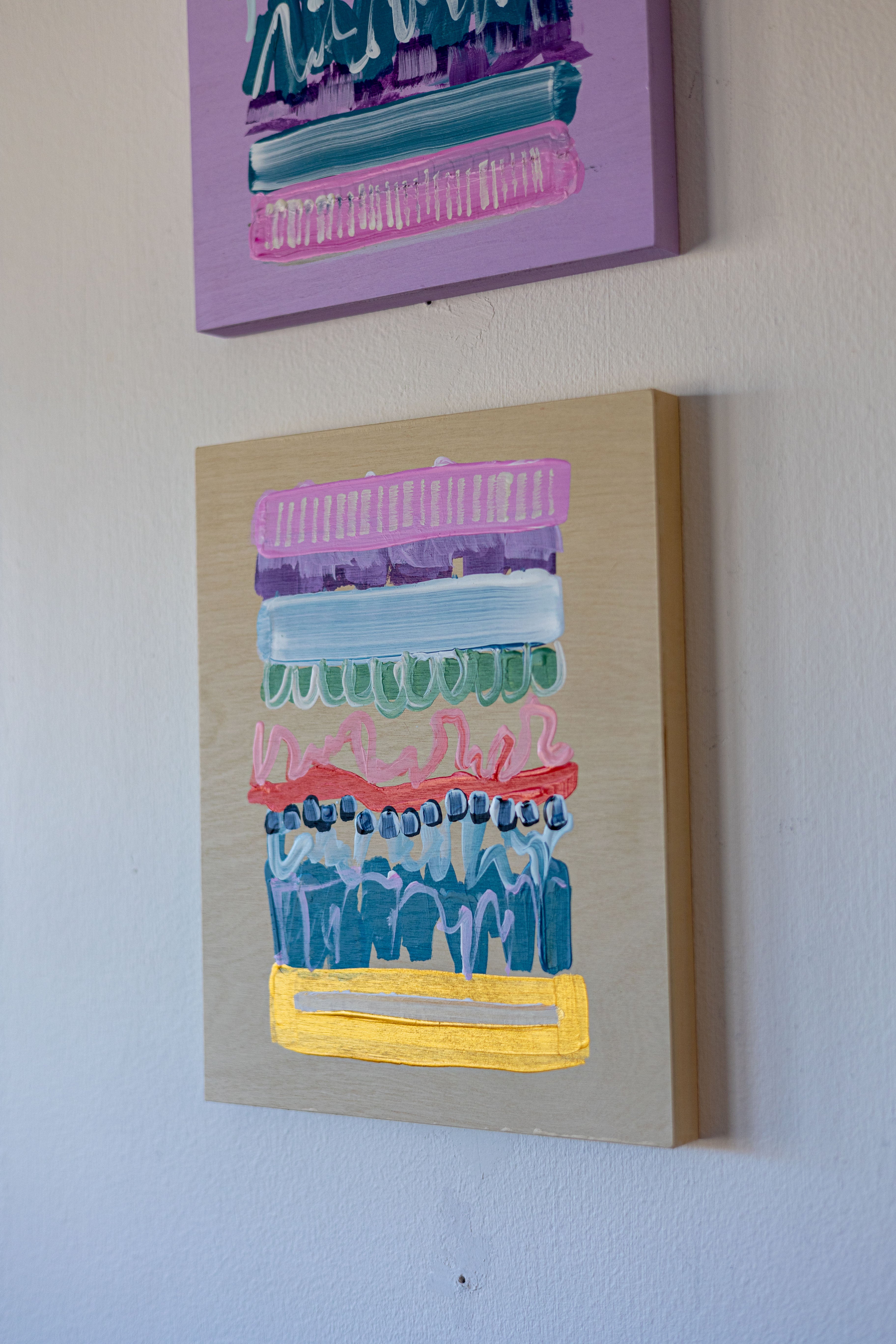 This piece represents the stacked strength we had to build, layer by layer, a foundation of hope and positivity that lit the way through one of the darkest moments of our lives. Bold, vibrant colors dance across the canvas, pushing back the darkness and celebrating the light that ultimately broke through.