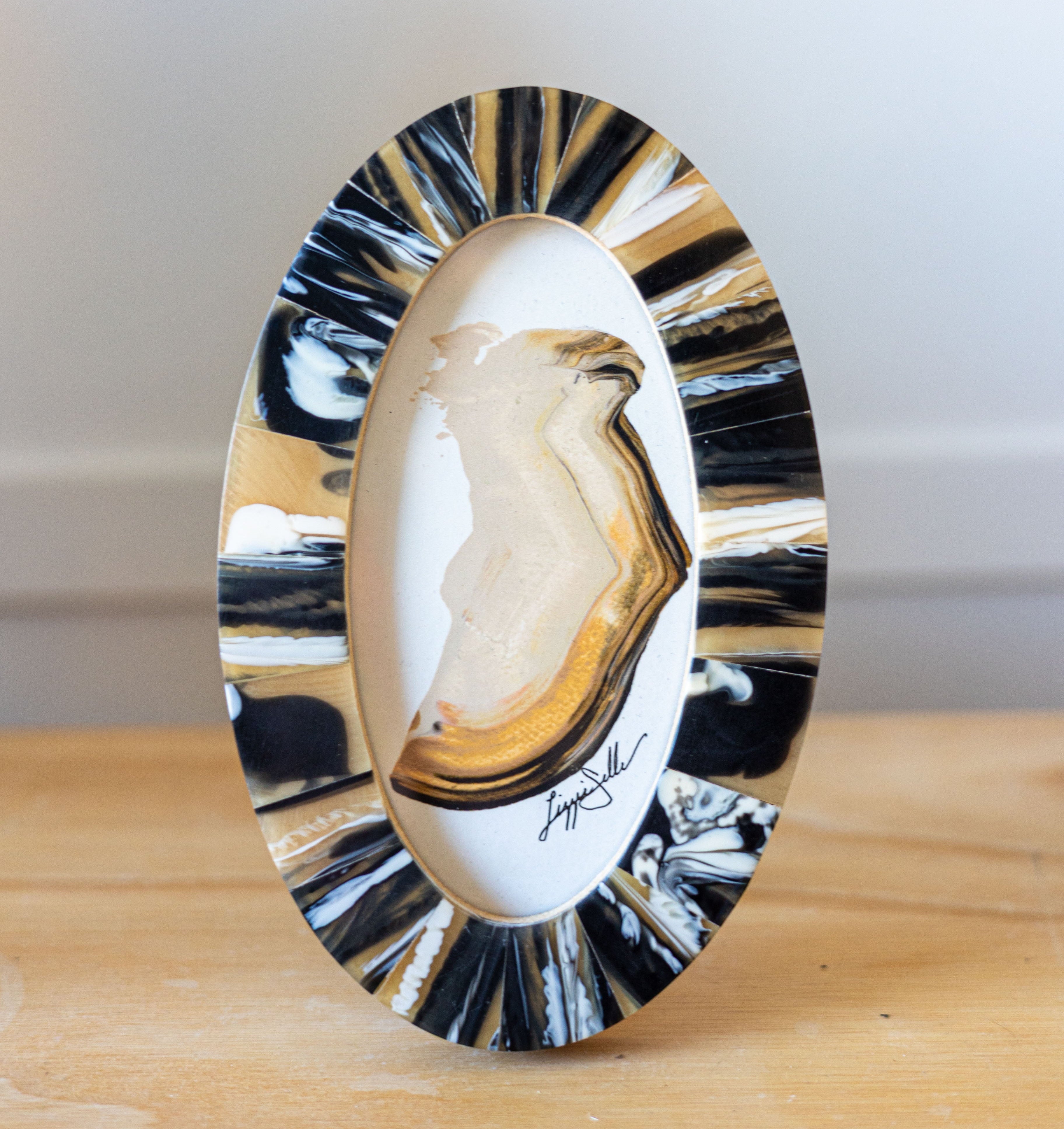 Giclee fine art abstract agate print in 4.8" x 7.5" Marbled Resin Oval Tabletop Frame.
