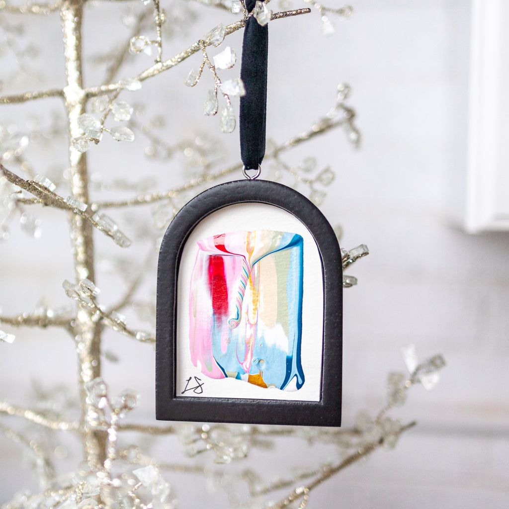 / Jingle Bell Original Art Ornament - Pastels with Pop of Red and Blue Swish and Swirl
