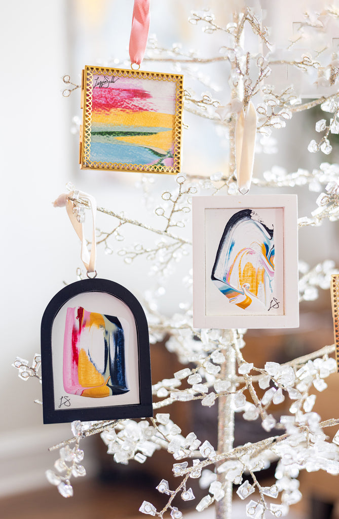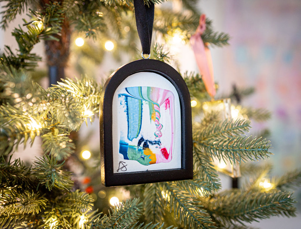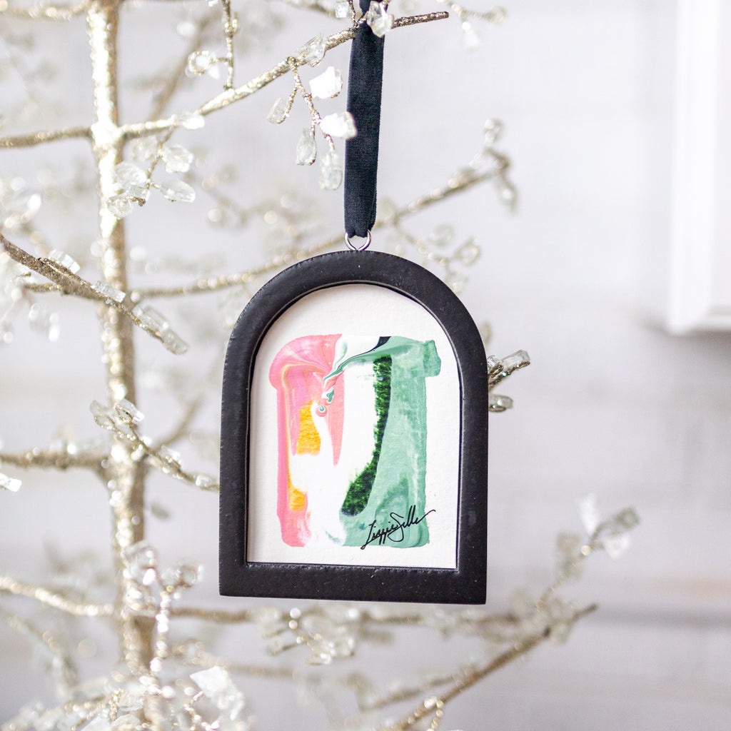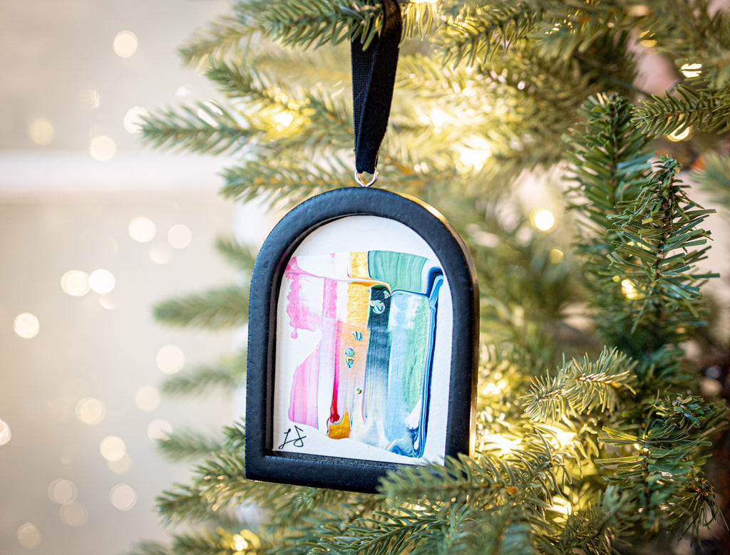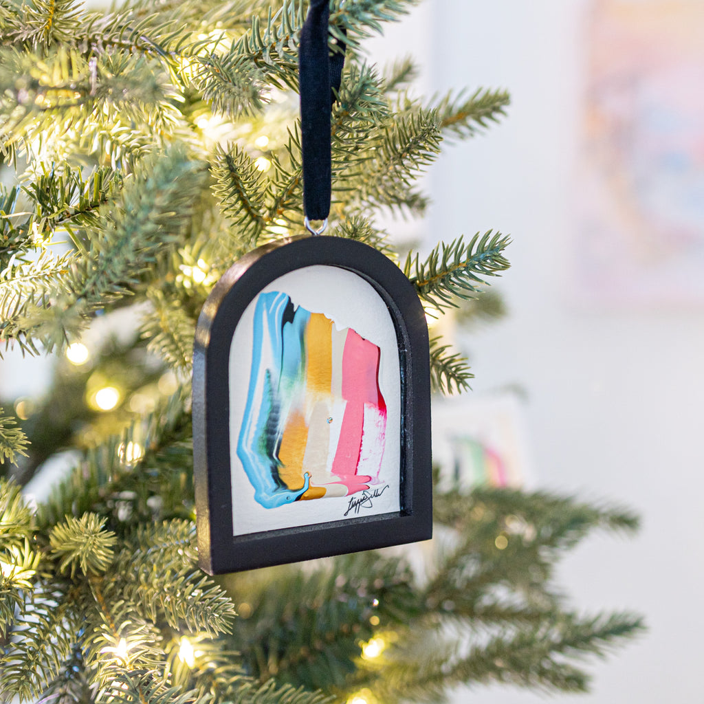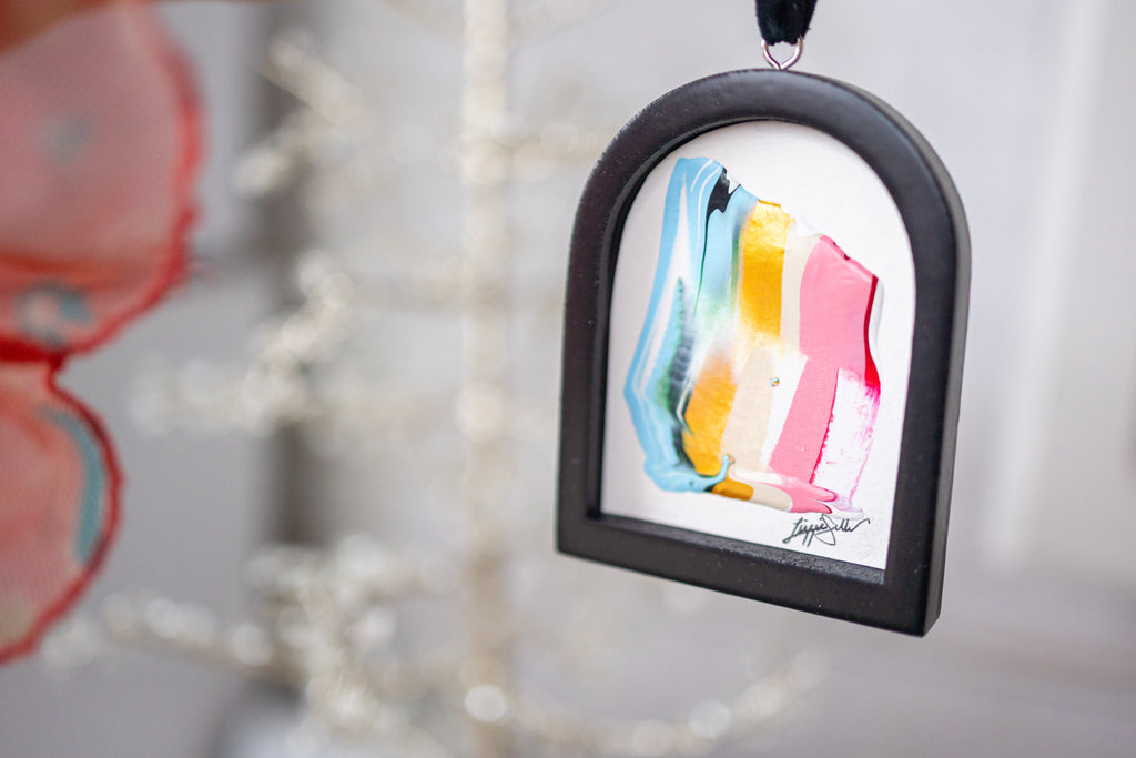 / Jingle Bell Original Art Ornament - Peach and Green Intermingle