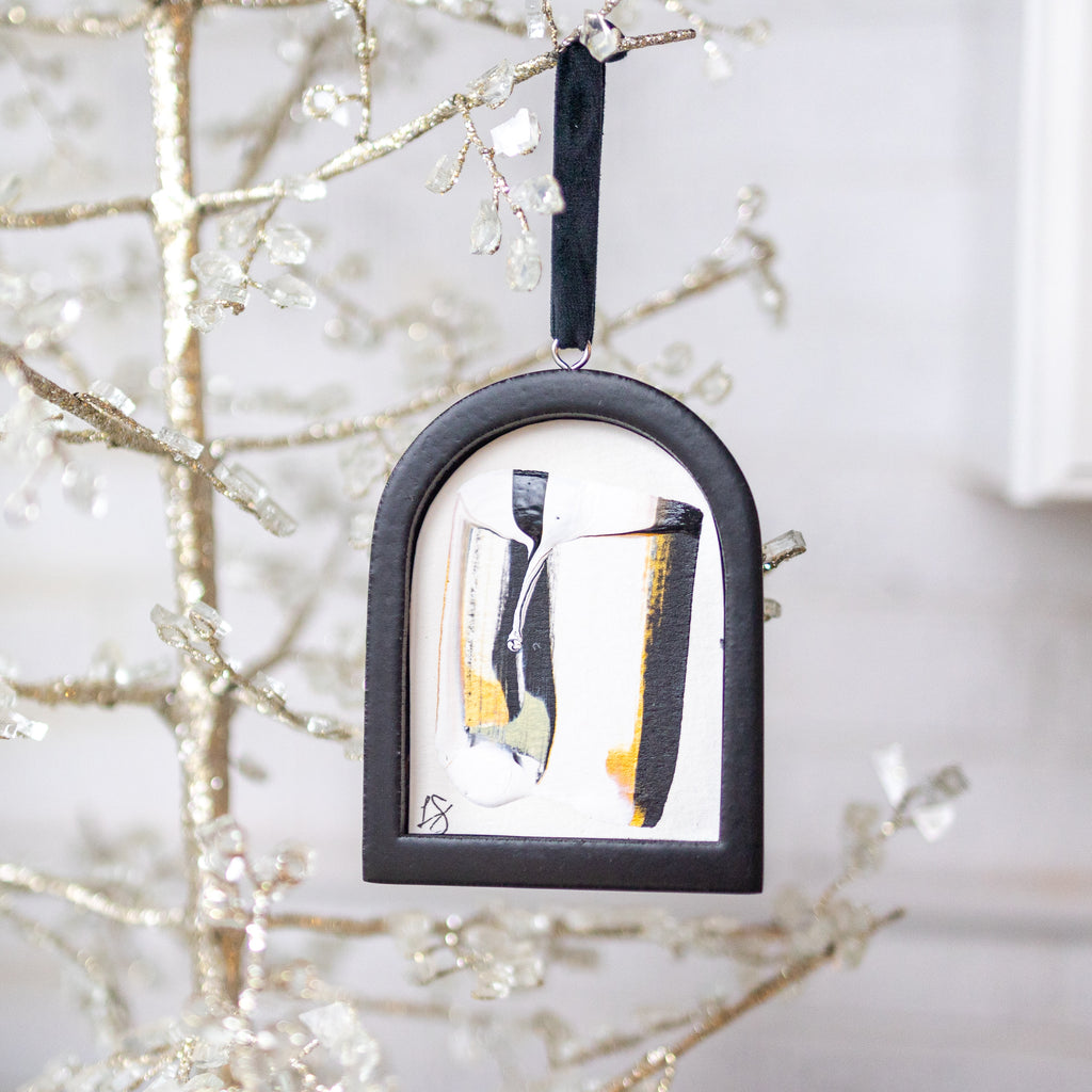/ Jingle Bell Original Art Ornament - Black and White with a Pop of Metallic Gold