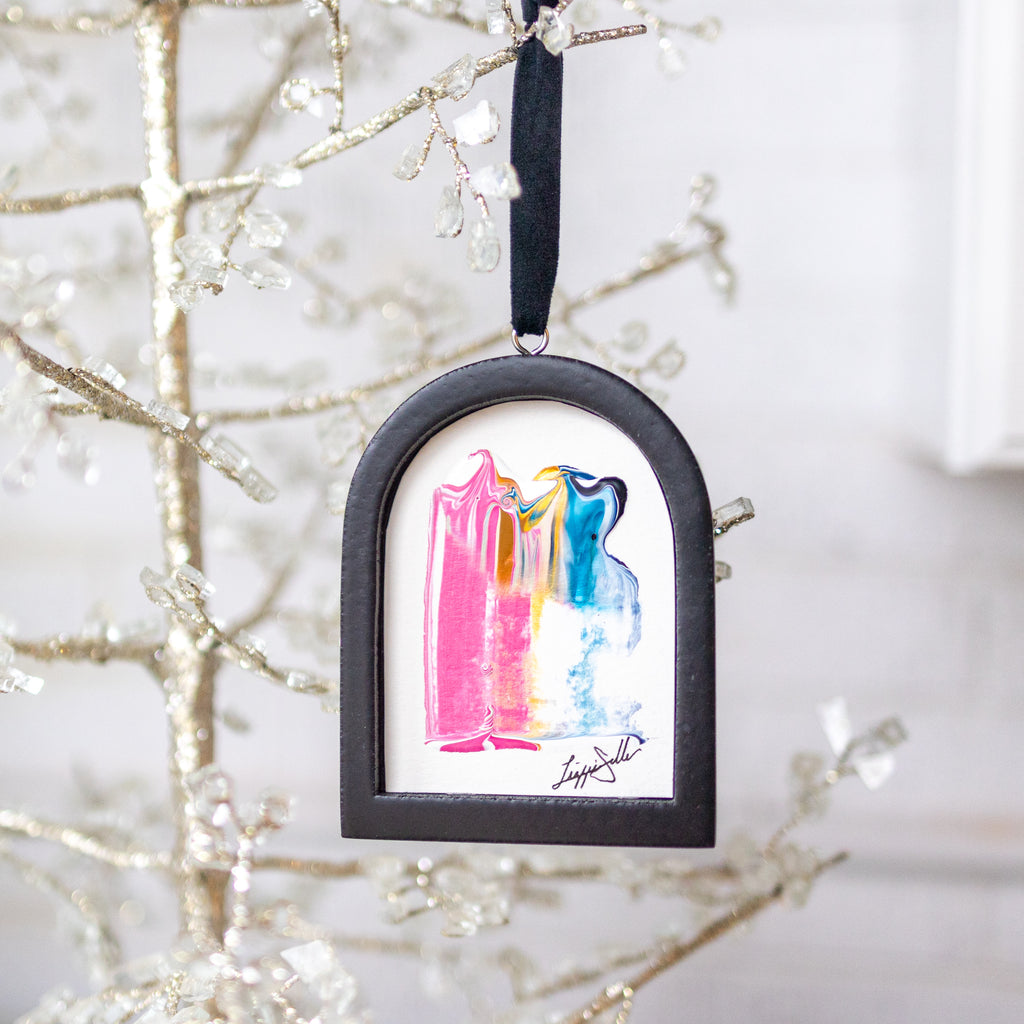 / Jingle Bell Original Art Ornament - Pink Blue Gold Marbled Abstract