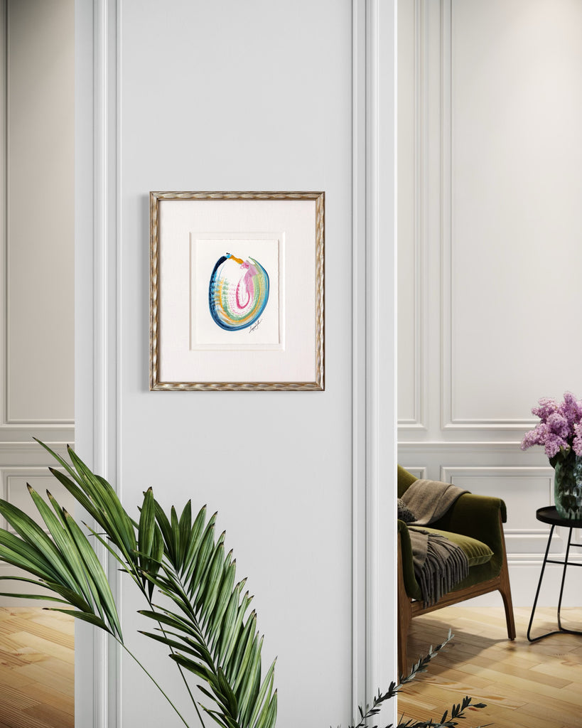 / "Joyful Connections-Circle" Original Gestural Art in Custom Wave Frame