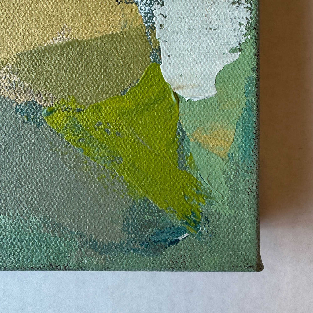 Karyn finds inspiration in both the vibrant landscapes from her time in California and the gritty scenery she saw while commuting on the Metra to Chicago. For her, the horizon symbolizes a dream within, expressed through bright, vivid colors. Her marks and brush strokes represent the bold, messy leaps we take towards our goals, while the color blocks capture those quiet moments of contentment along the way.
