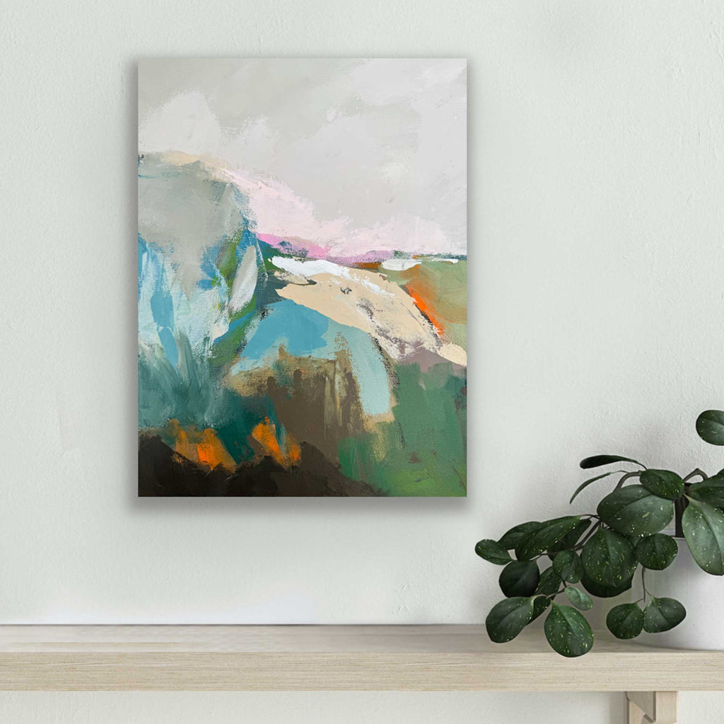 Karyn finds inspiration in both the vibrant landscapes from her time in California and the gritty scenery she saw while commuting on the Metra to Chicago. For her, the horizon symbolizes a dream within, expressed through bright, vivid colors. Her marks and brush strokes represent the bold, messy leaps we take towards our goals, while the color blocks capture those quiet moments of contentment along the way.