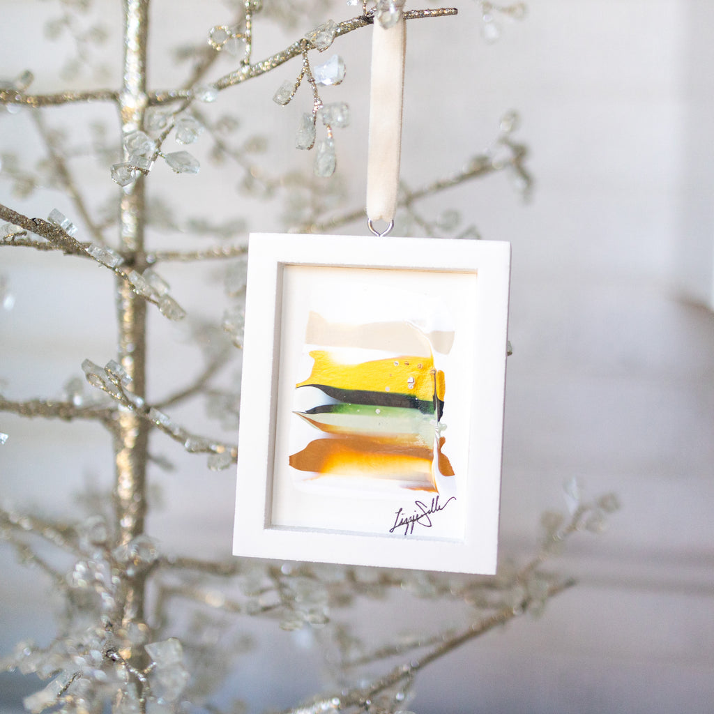 / Let It Snow Original Art Ornament - Green Gold Tan Minimalist