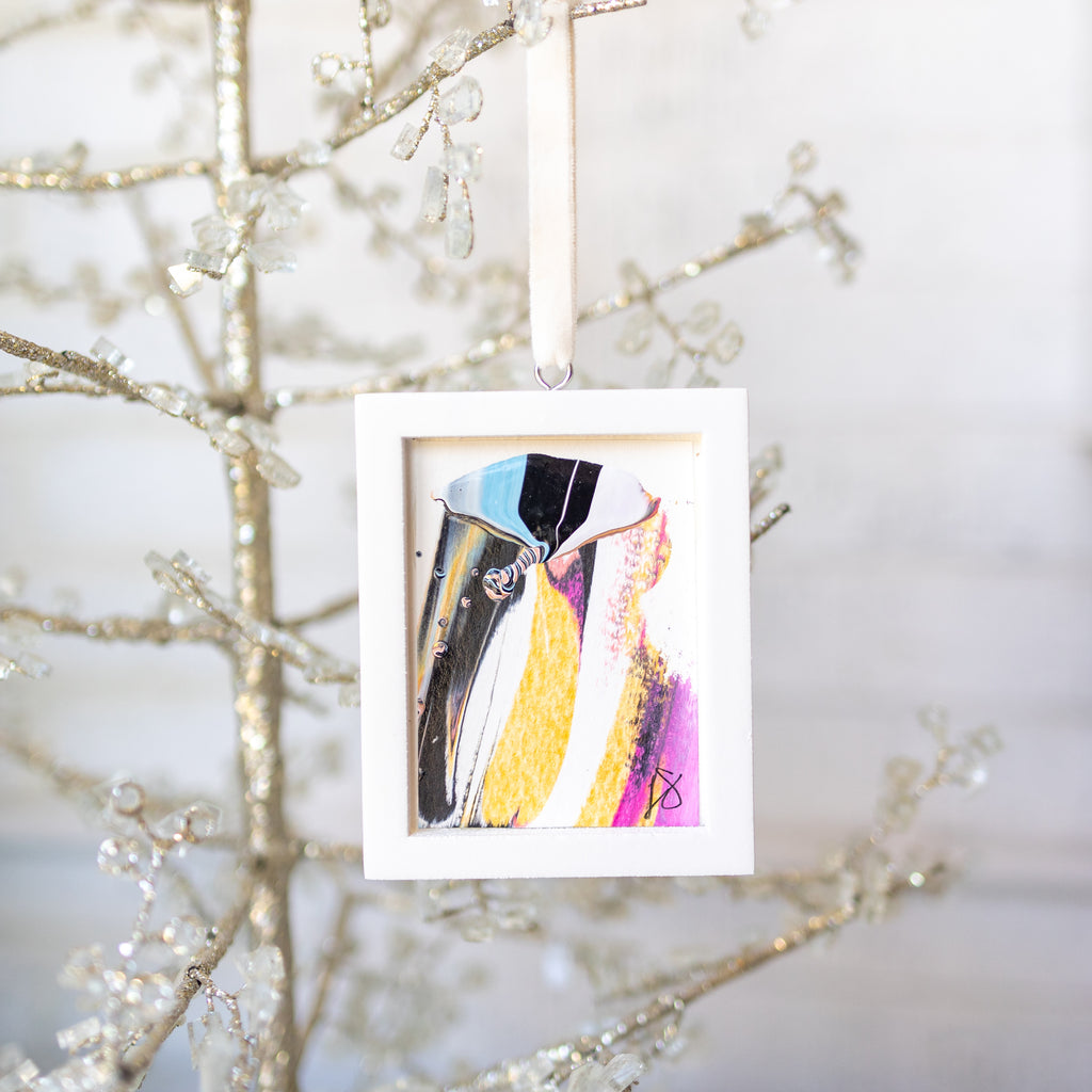 / Let It Snow Original Art Ornament - High Contrast Swish and Swirl Pink Black Blue