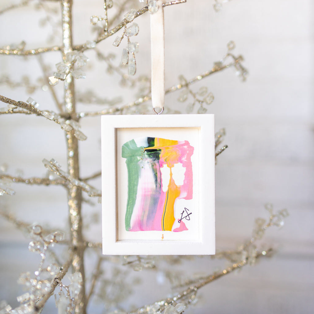 / Let It Snow Original Art Ornament - Pink Gold Green Swish