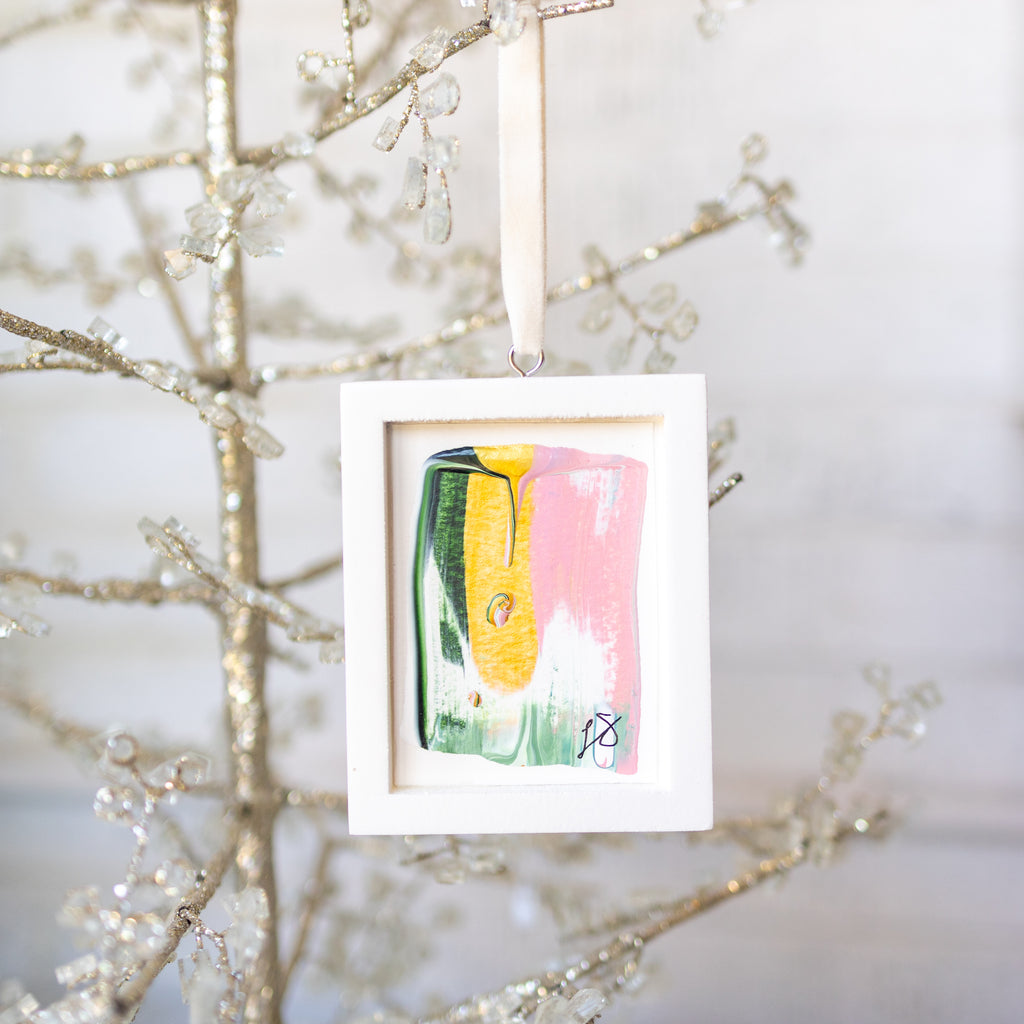 / Let It Snow Original Art Ornament - Peach Gold Green Upward Swish