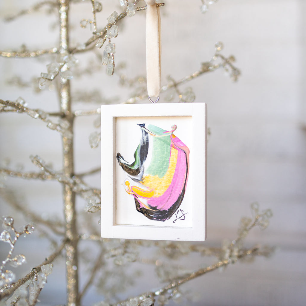 / Let It Snow Original Art Ornament - Curved Swish Black Green Gold Pink