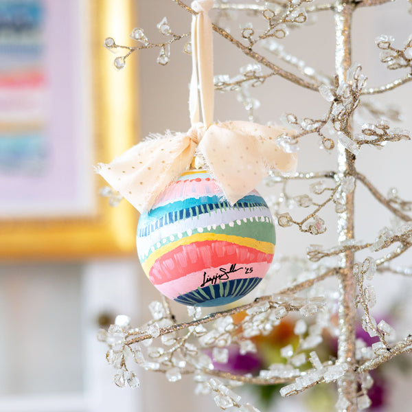 Each hand-painted Silver Linings Globe ornament is a symbol of strength and hope—born from my daughter Avery’s brave journey through brain surgery this spring. Layers of color and light remind us that even in our darkest moments, joy can shine through.