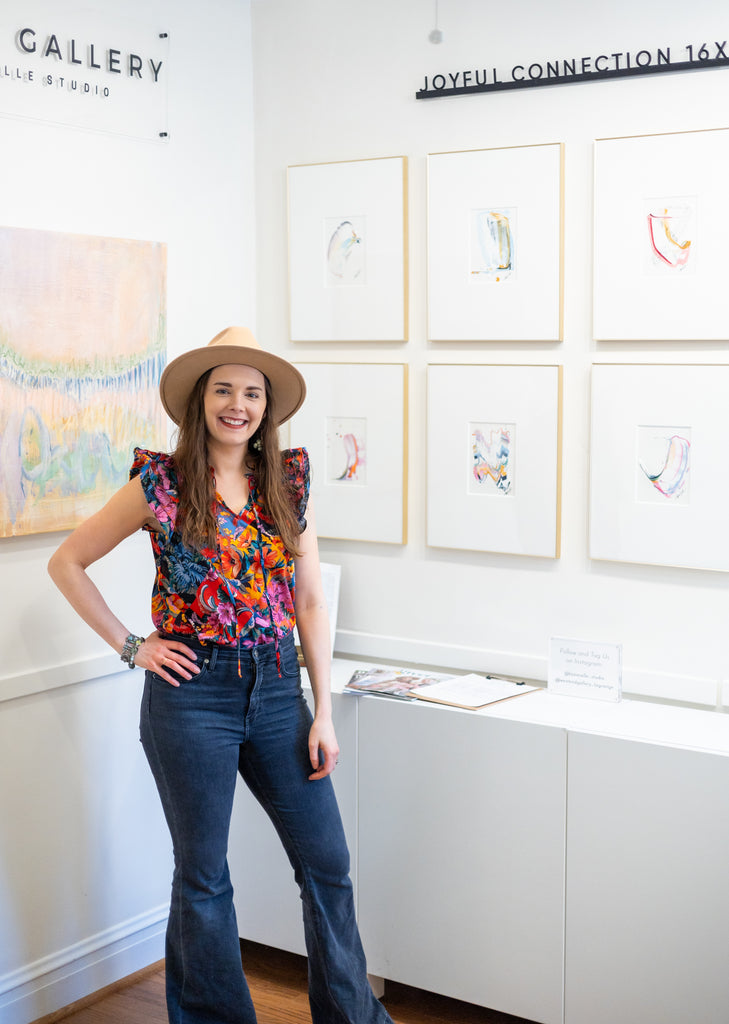 / "Joyful Connections" Original Art Framed in 16x20 Aluminum Brass - Lavender Swish