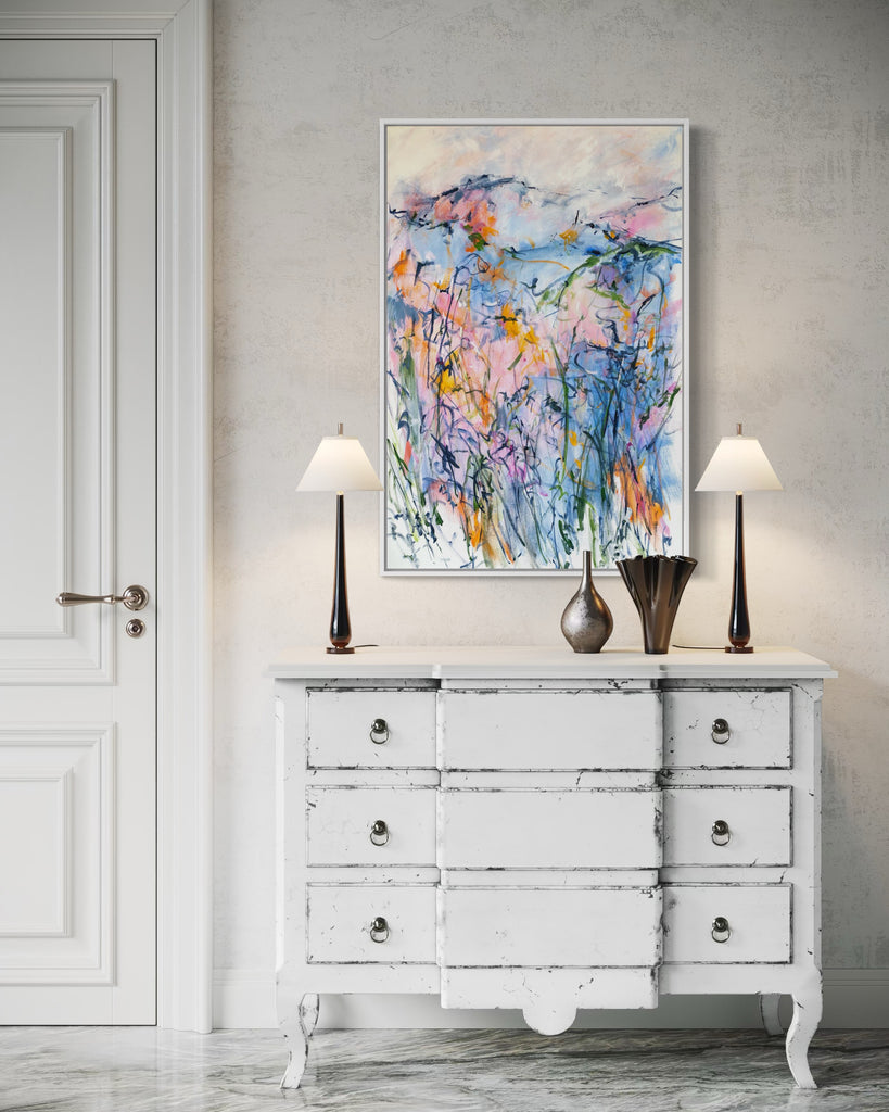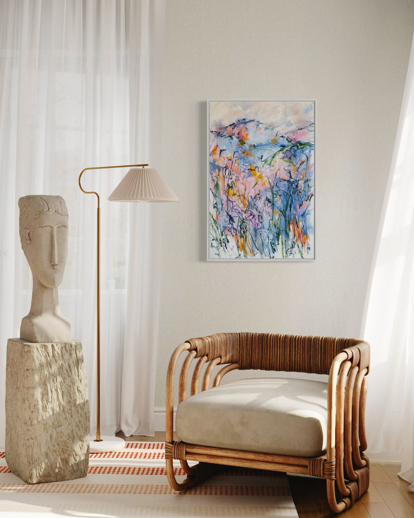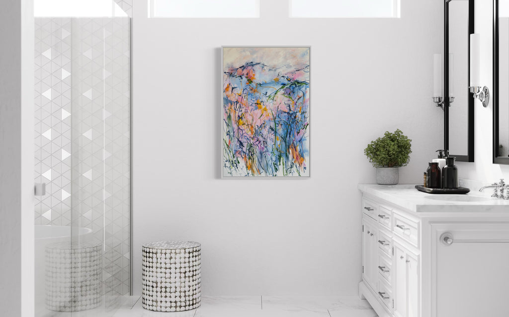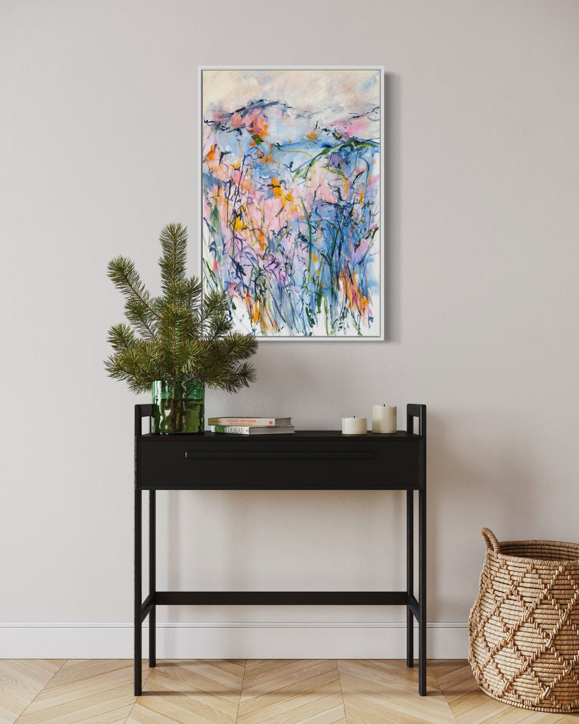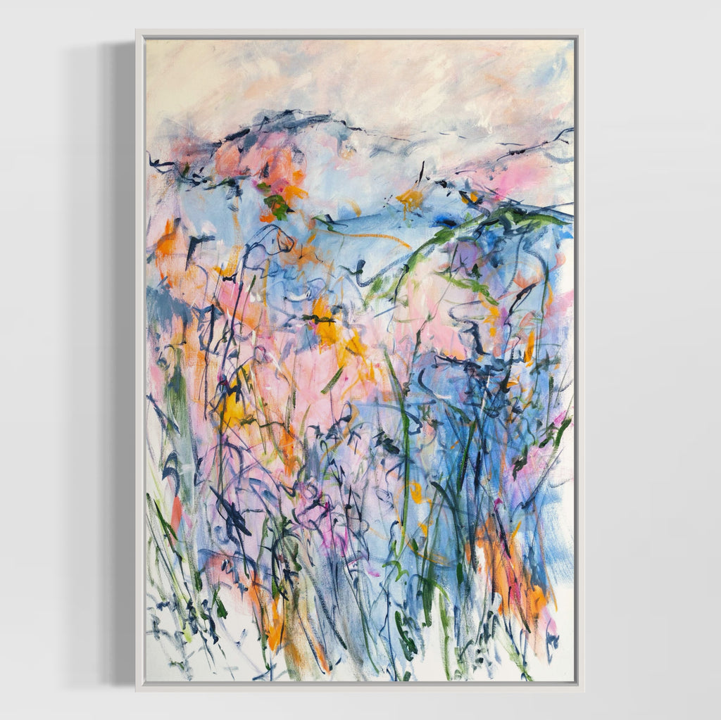/ "Sound of Music" 24x36 mixed media on canvas in whitewashed wood floater frame