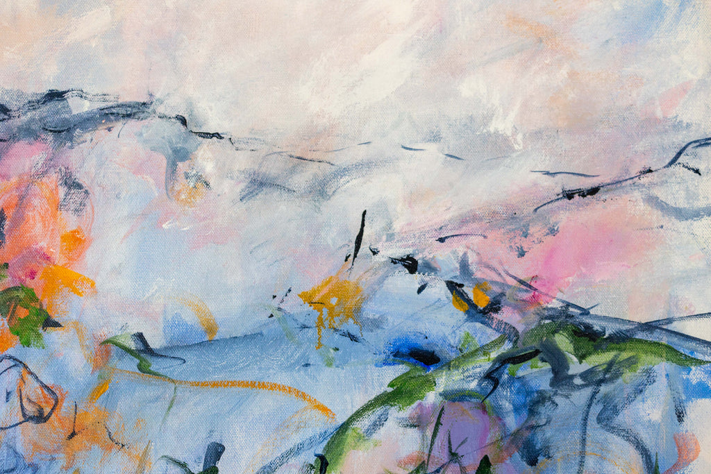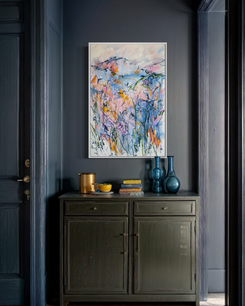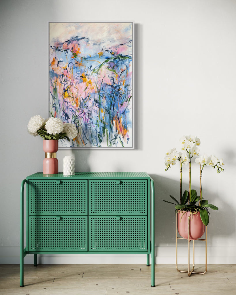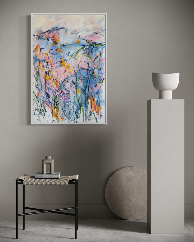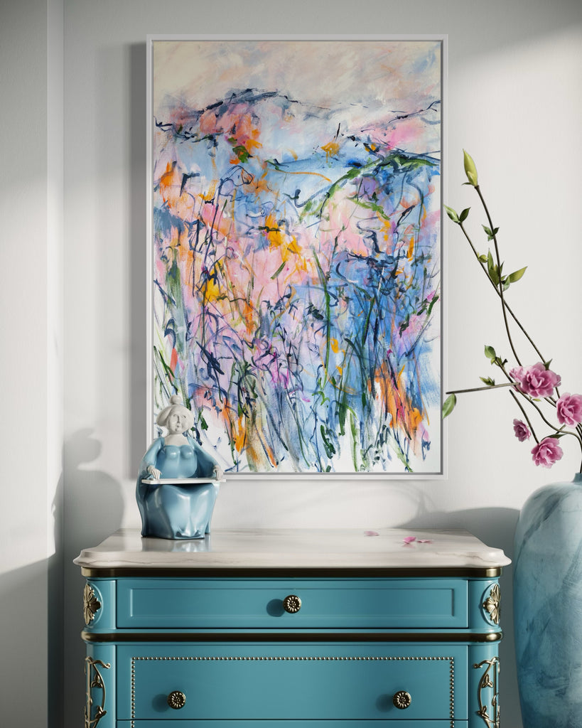 / "Sound of Music" 24x36 mixed media on canvas in whitewashed wood floater frame