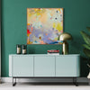 Becker did not fully step into adult art life until summer of 2017, when both her children were away at camp for the first time. Having studied painting with a focus on color theory, she worked on what would become her signature style. Intuitive mark making combined with bold and beautiful color schemes, in the style of abstract expressionism.