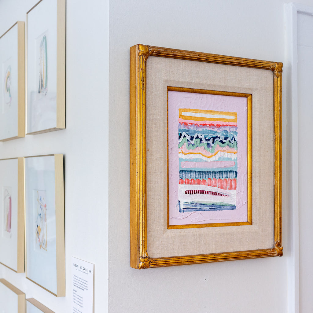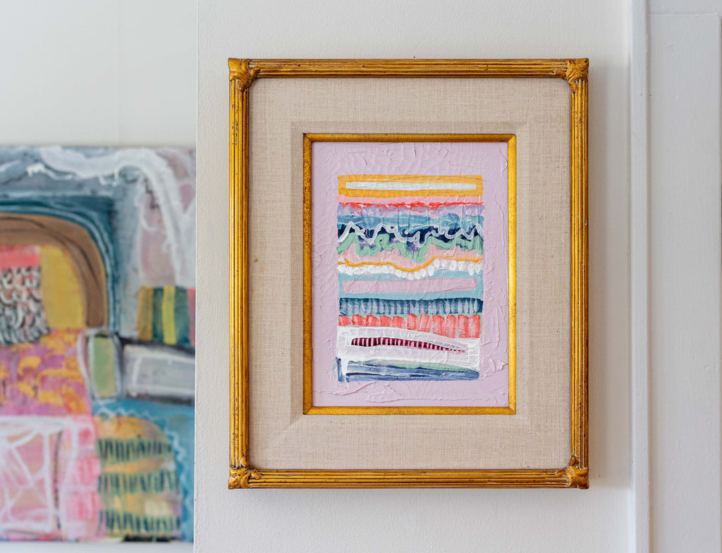 "Silver Linings,” 15.5"x18.5" Acrylic, Crackle Paste and Oil Pastel on Canvas Board in Vintage Gold Frame with linen mat.